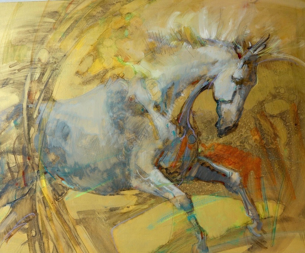 In this exciting, energetic video, Lesley takes the student on a journey to Key #2. Students are inspired and encouraged toward their own creative expression as Lesley demonstrates how to create a large (40 x 60) dynamic, monochrome painting of a horse in under an hour.